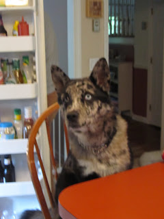 This is Scout - Jonathan likes to do "odd" things with him. He thought sitting up at the kitchen counter was a good thing. It is until he's all alone and thinks it's okay to get up there and destroy what's ON the counter.